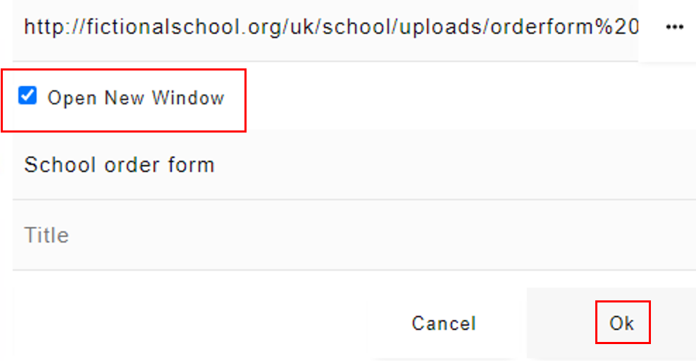 - Once the PDF is selected, a pop-up will appear. Tick the Open in a new window checkbox and click OK.