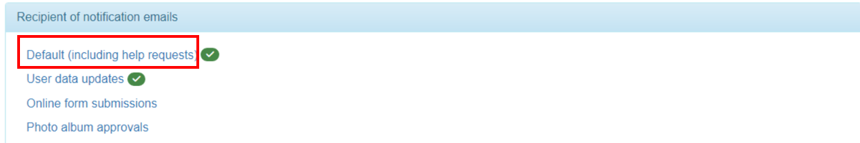 Important Note: If different emails are not specified for Photo album approvals and Online form submissions, these notifications will be sent to the email entered under Default (including help requests).