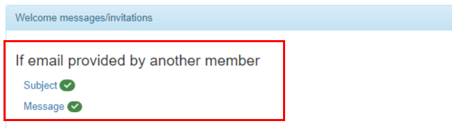 - Go to Welcome messages/Invitations > Introduction message sent if email provided by another member - click Subject and/or Message to add/overwrite the existing text (if any).