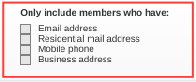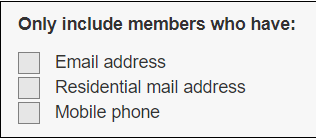 NOTE: You MUST apply the appropriate filters below to include or exclude a member based on their subscription preferences. For example, if you are only contacting those who have NOT opted out then you must select the relevant filter highlighted above in red. By selecting one or more of these filters, those who have opted out will then be EXCLUDED from your search/email.