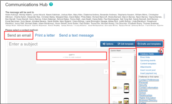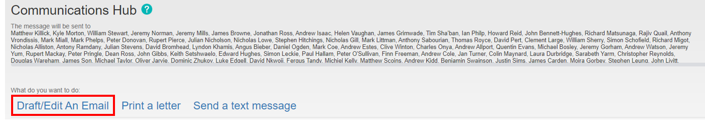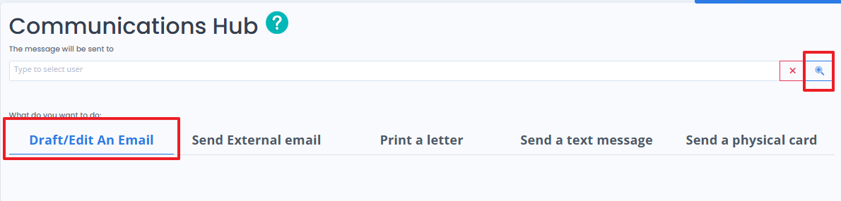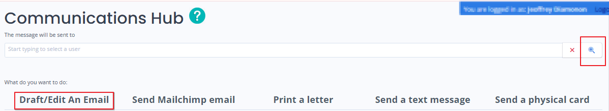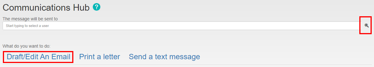 The Communication Hub screen will appear. Click Draft/Email An Email link highlighted below is begin composing your email.