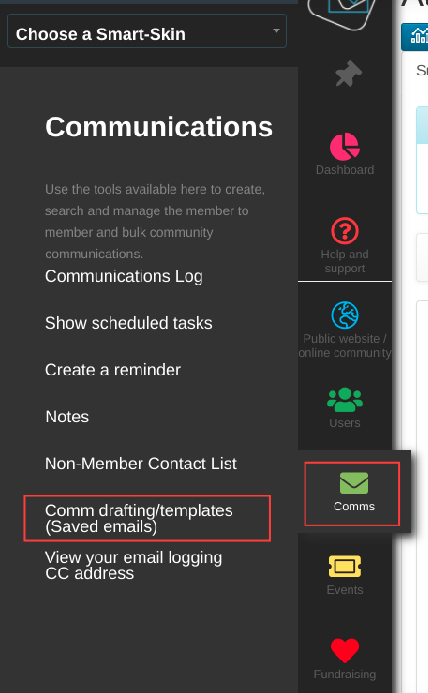 Go to Admin Tools menu and select Comms > Comms drafting/templates saved emails.
