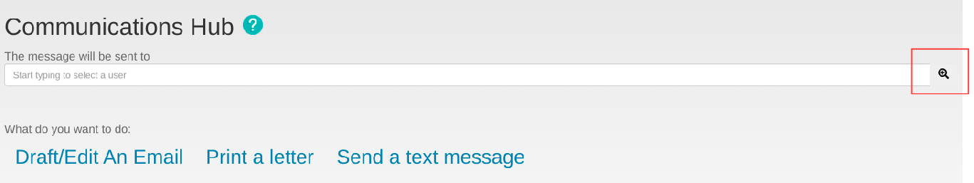 Emailing a group of users is a two-step process which can be started from either the search page OR from the communications page.