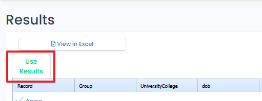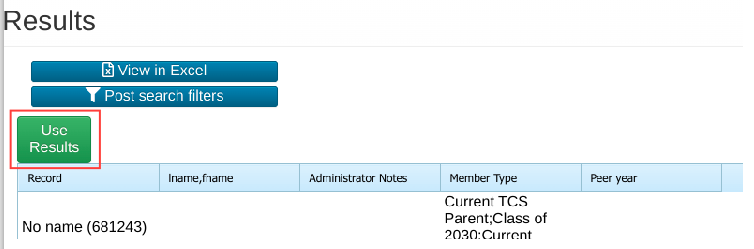 - Once the search results contain the names of all of the users that you would like to contact, press the green Use Results button.