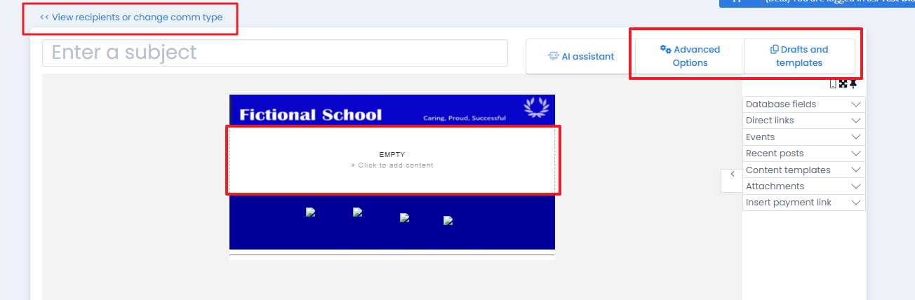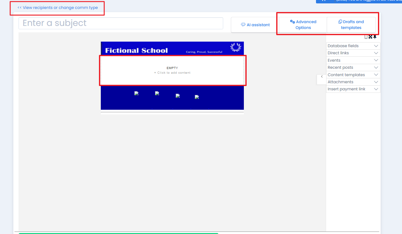 c. Build your email by clicking the Empty - Click to add content button. (see How do I use the email content builder - enewsletters? for more details).