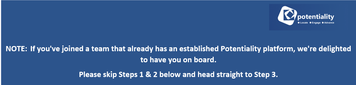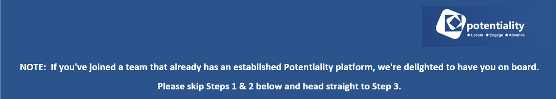We appreciate that it can be daunting to set up your Potentiality Platform. Therefore, we like to try and guide you through the process as much as possible. As a newly signed up client, you are entitled to 5 hours of training. Most clients undertake training once they have completed all the items listed in step one below. We recommend that you decide internally upon what areas of the platform are most important to you, familiarise yourself with the system and write down any questions that you may have as you navigate around the site so that you can make the most out of the 5 hours allocated. After this stage, if you feel that you would benefit from further training then we can provide additional training at a cost.