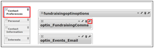 You will see a list of the tabs and fields that exist inside each member's profile. Click on the Communication Preferences tab, followed by the icon