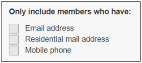 Whether you are contacting your entire database or a small group of people, we would strongly recommend that you select the relevant option below under Search options. This will filter your search to only include those who have the necessary contact details for the correspondence type that you are using to reach out to your members. For example, if you are sending an email then you would select 'Email address' from the list below. This is an important step, otherwise, you may believe that you are emailing 5000 members when in fact only 3000 of those members have an email address.