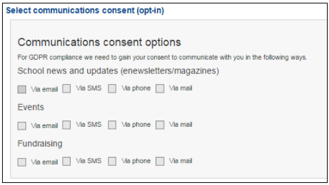 Historically, many organisations have taken an "opt-out" approach to communications preferences. Ie. Community members could tick checkboxes to say "don't send me administrator emails or "don't send me the eNewsletter" or "don't send me SMS (text) messages" etc. Some clients have chosen to continue to use this approach with the view that they can contact their community on the basis of "legitimate interest".